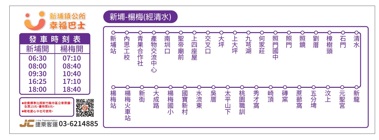 新埔鎮幸福巴士各路線時刻表