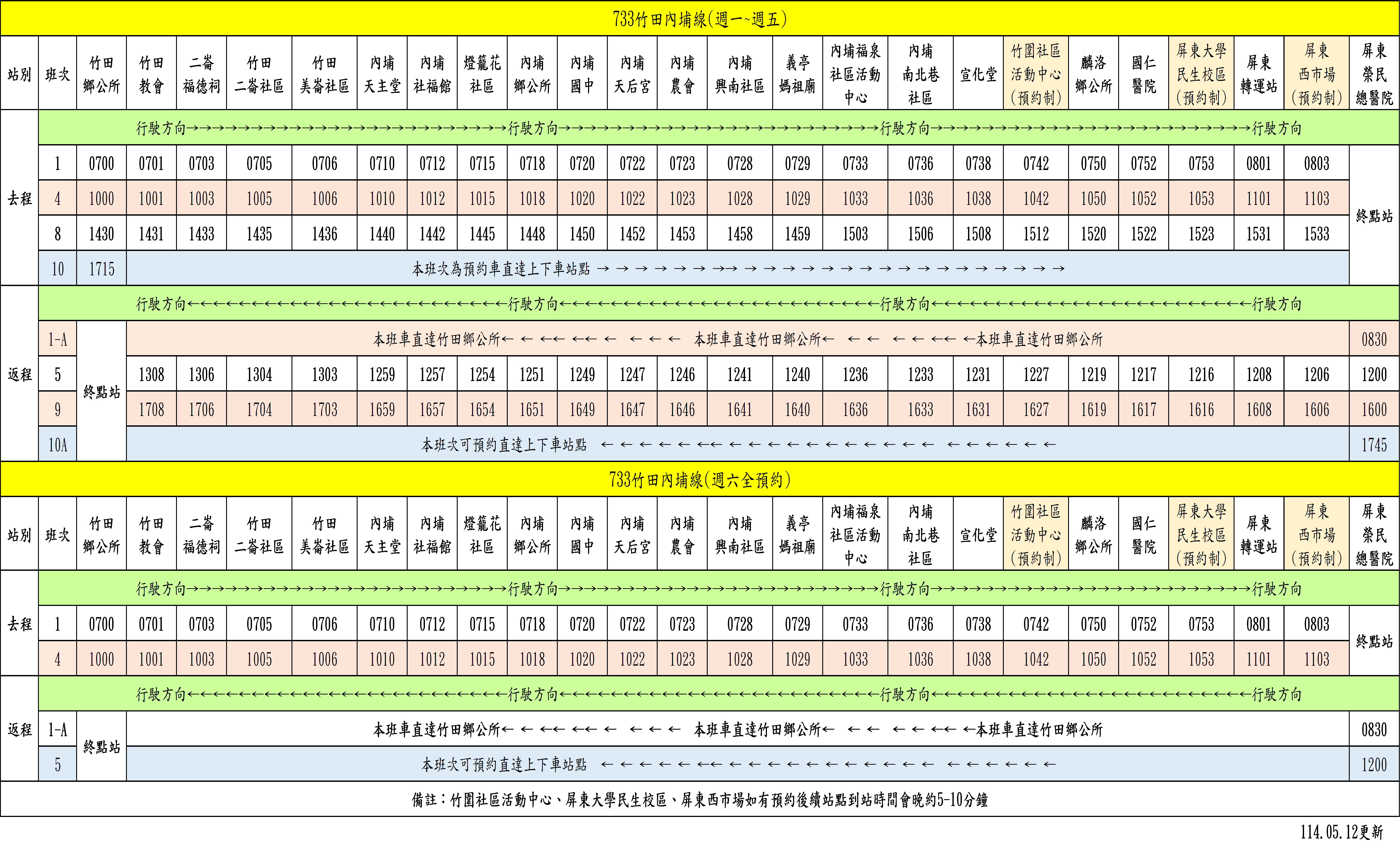 竹田鄉公所至麟洛鄉公所站間路段可預約上下車