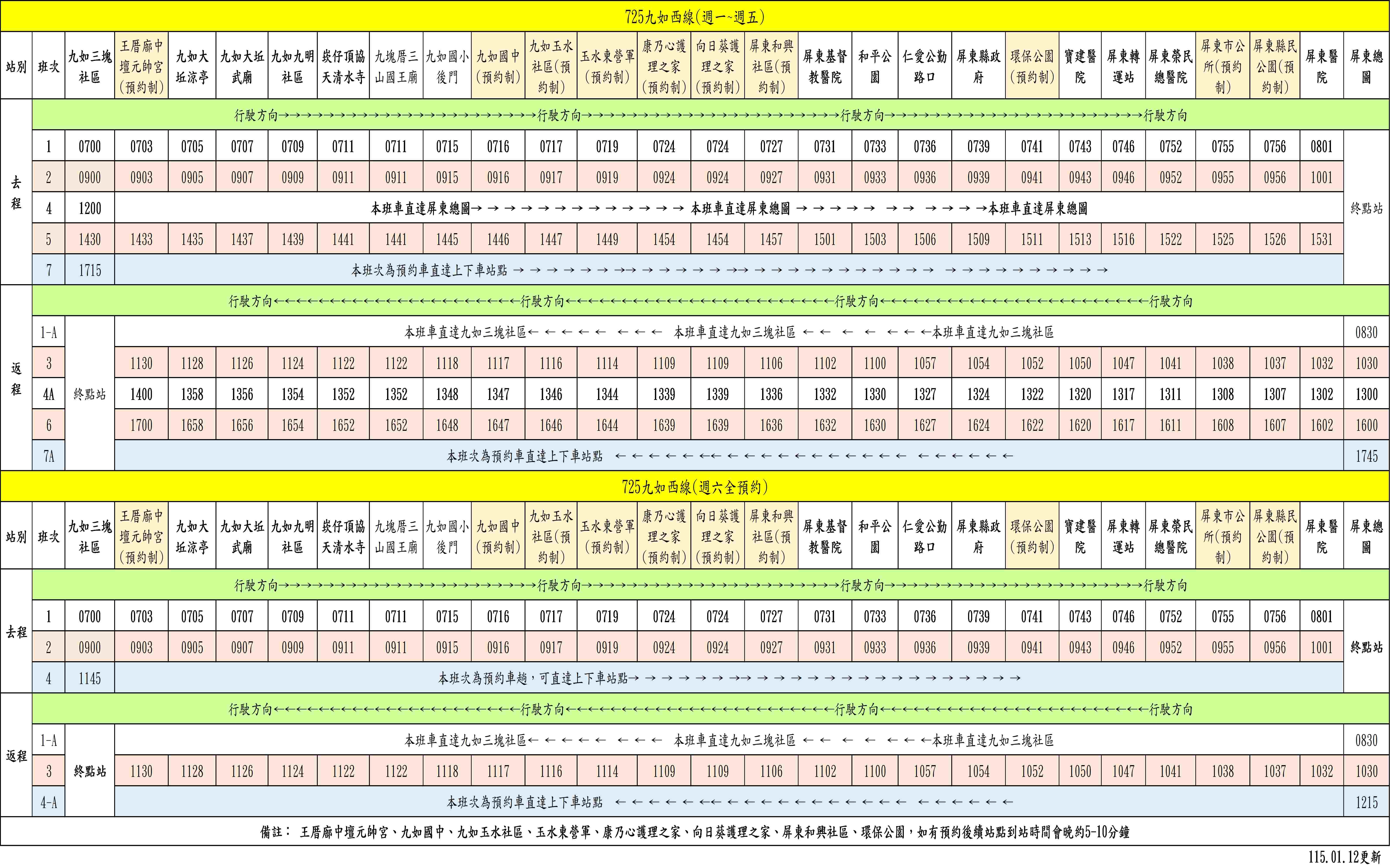 九如三塊社區至屏東和興社區間路段可預約上下車