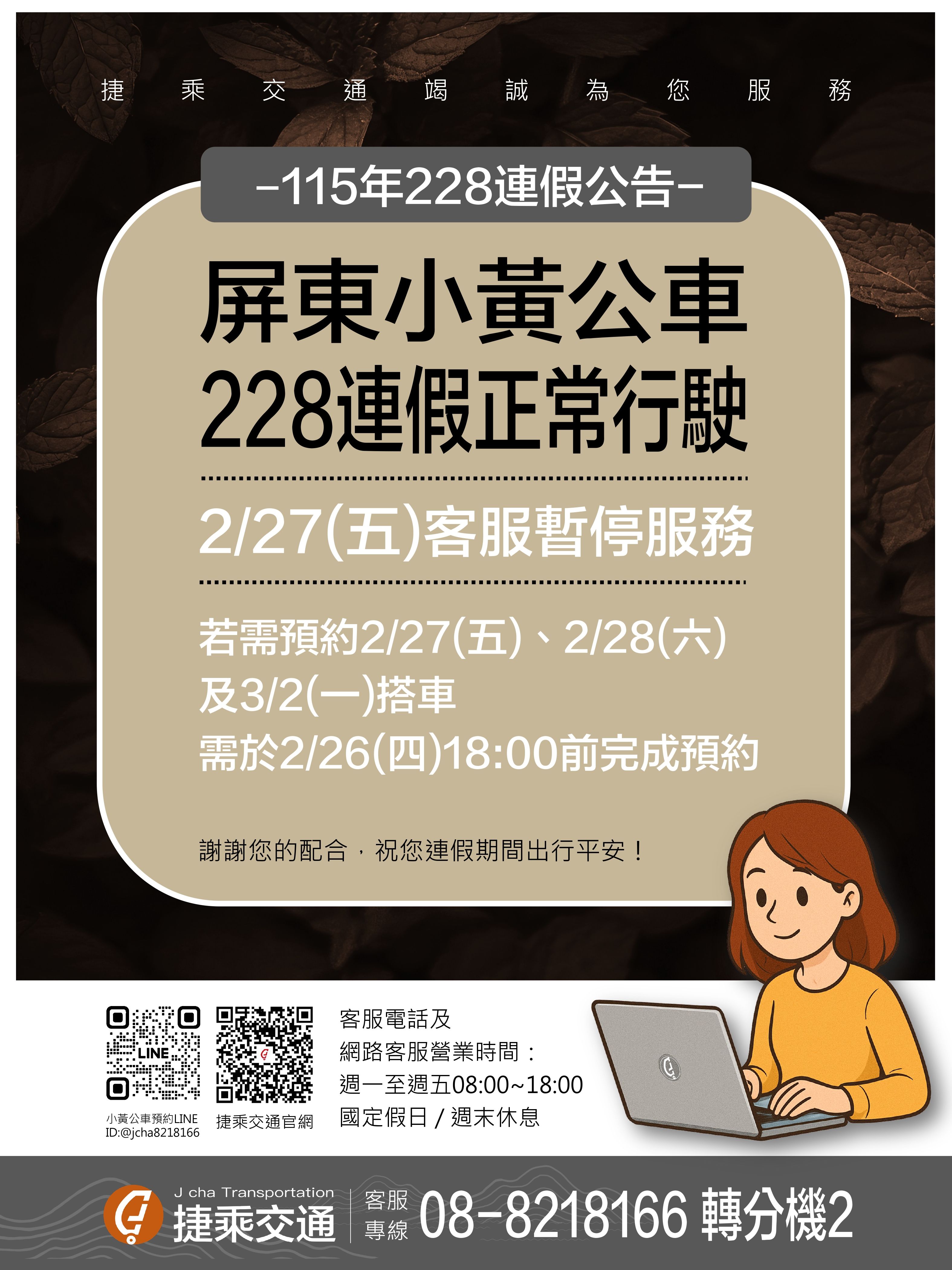 115年屏東小黃公車228連假正常行駛及客服服務時間公告