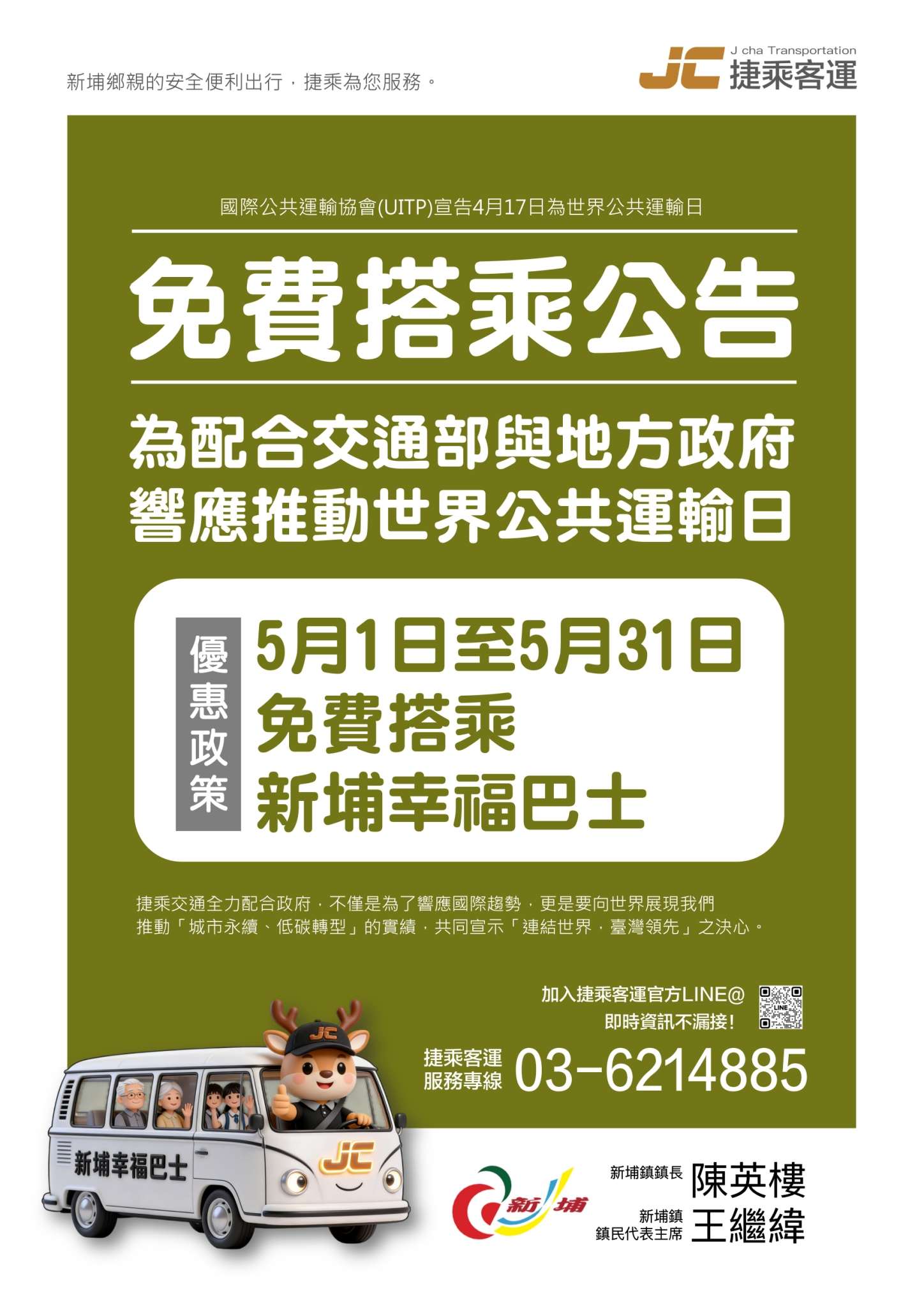新埔幸福巴士免費搭乘公告
